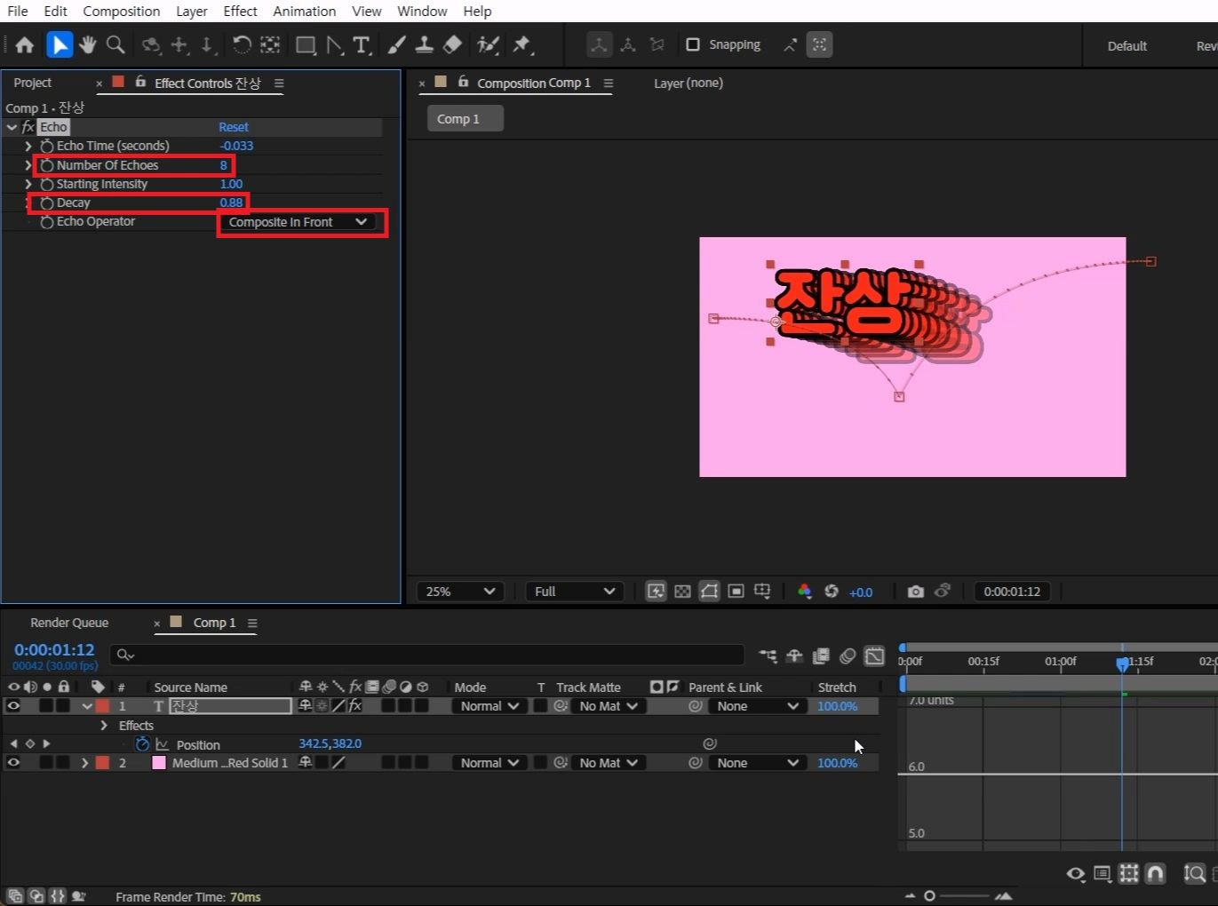 Number Of Echoes 값을 8 입력해서 잔상 수를 늘려주세요