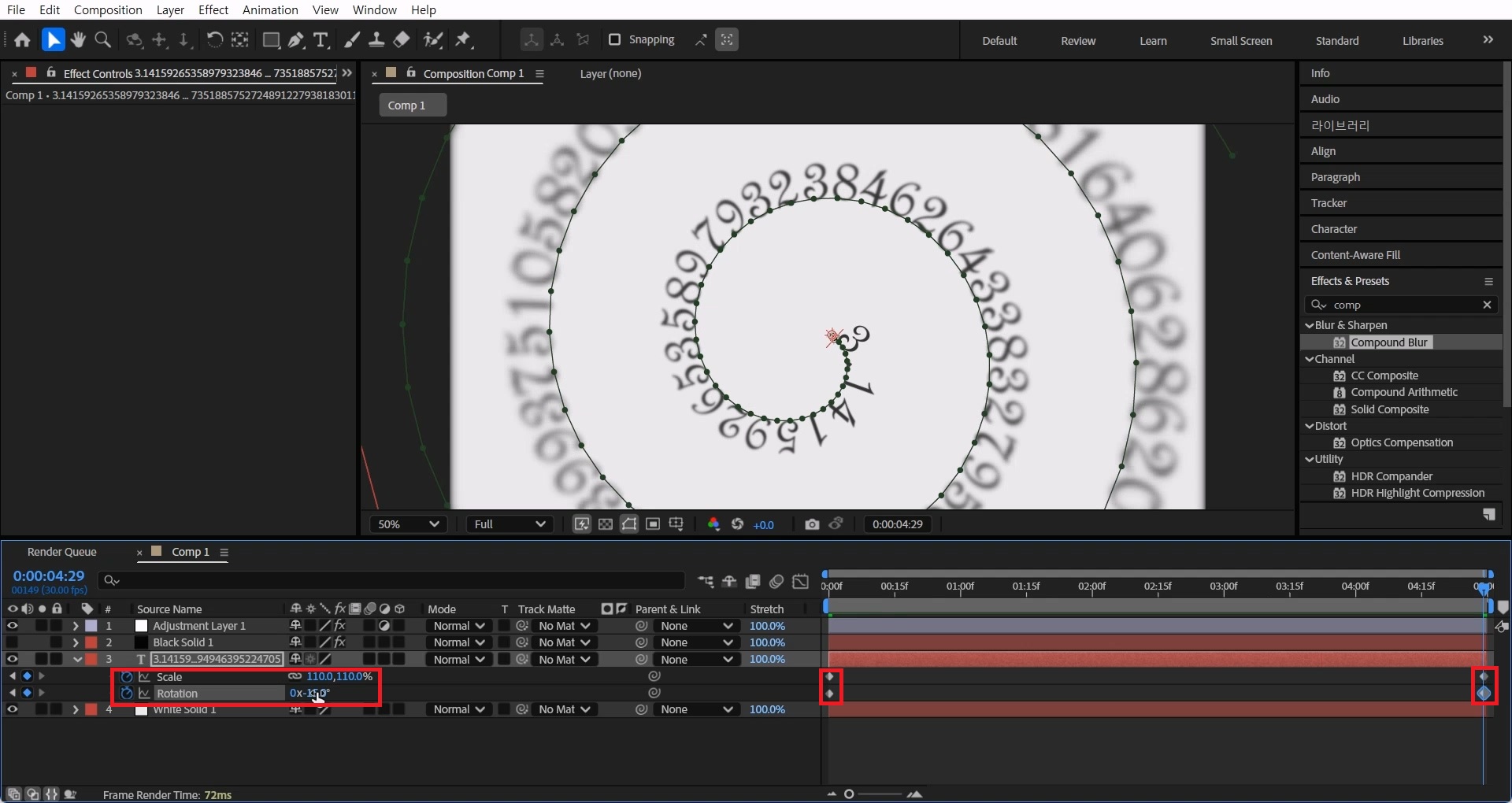 Effects & Presets 창에서 Compound Blur 검색해