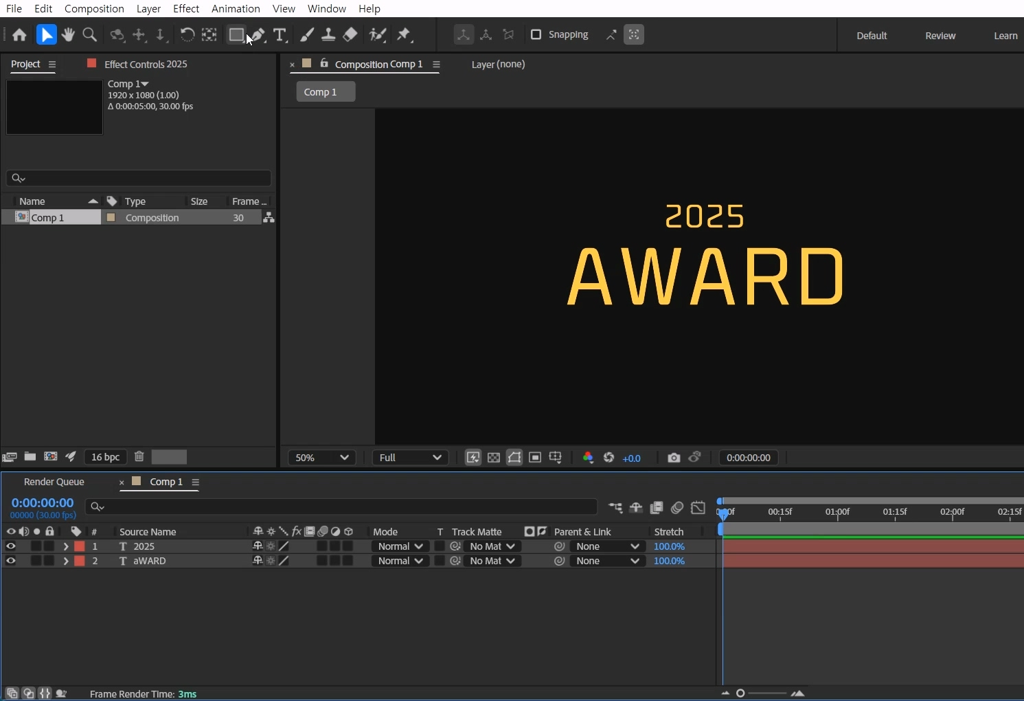 [Ctrl+N]로 1920*1080 크기 컴프창을 만들어 주세요.