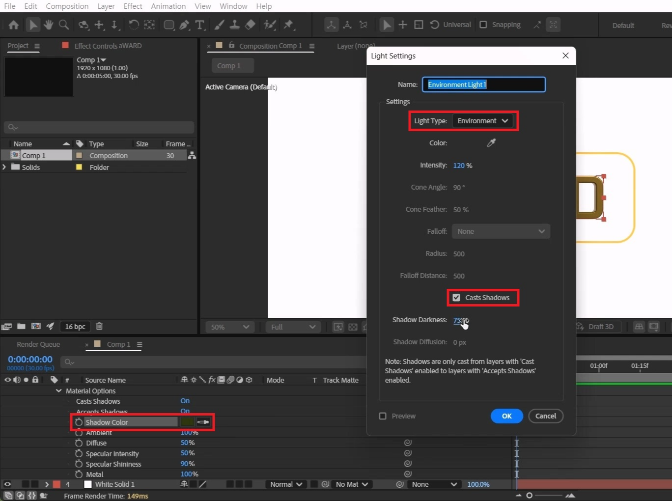 Light Type은 Environment로, Casts Shadows에 체크가 된 상태로 OK를 눌러주세요.