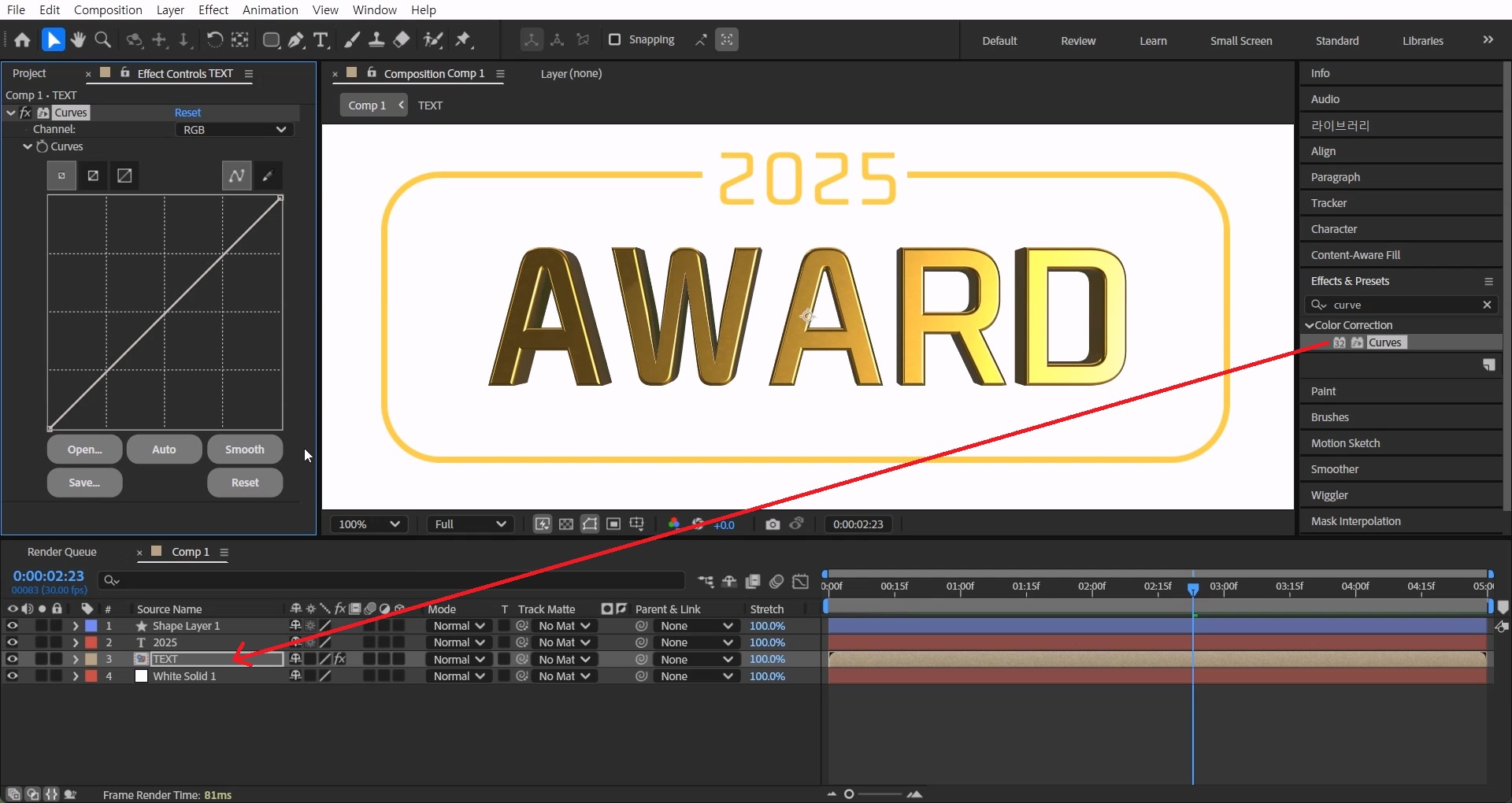 [Ctrl+5] Effects & Presets 창을 열고 Curves 검색해서