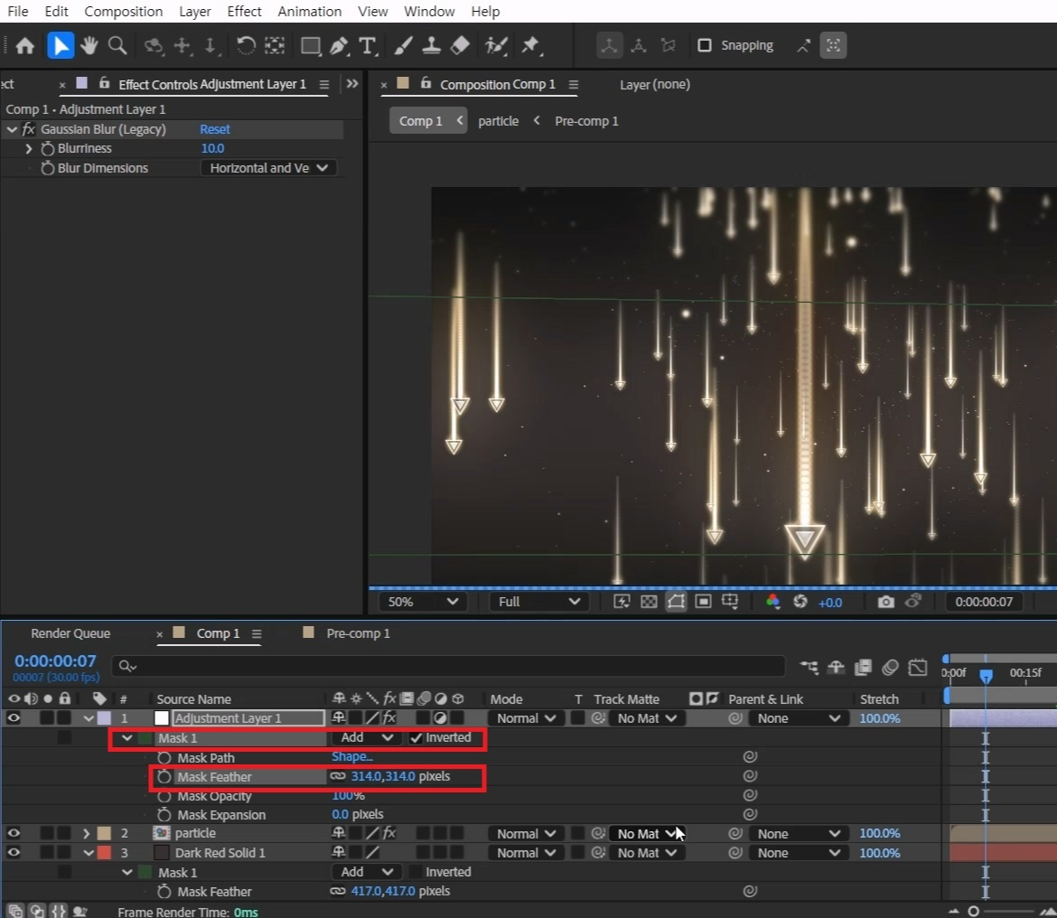 [F] 를 눌러 Mask Feather 값에 250을 입력하고 필요하다면 영역을 적당히 조절합니다.