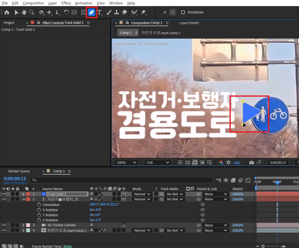 동영상을 선택하고 [Ctrl+Shift+C] 프리-컴프로 묶어줍니다.