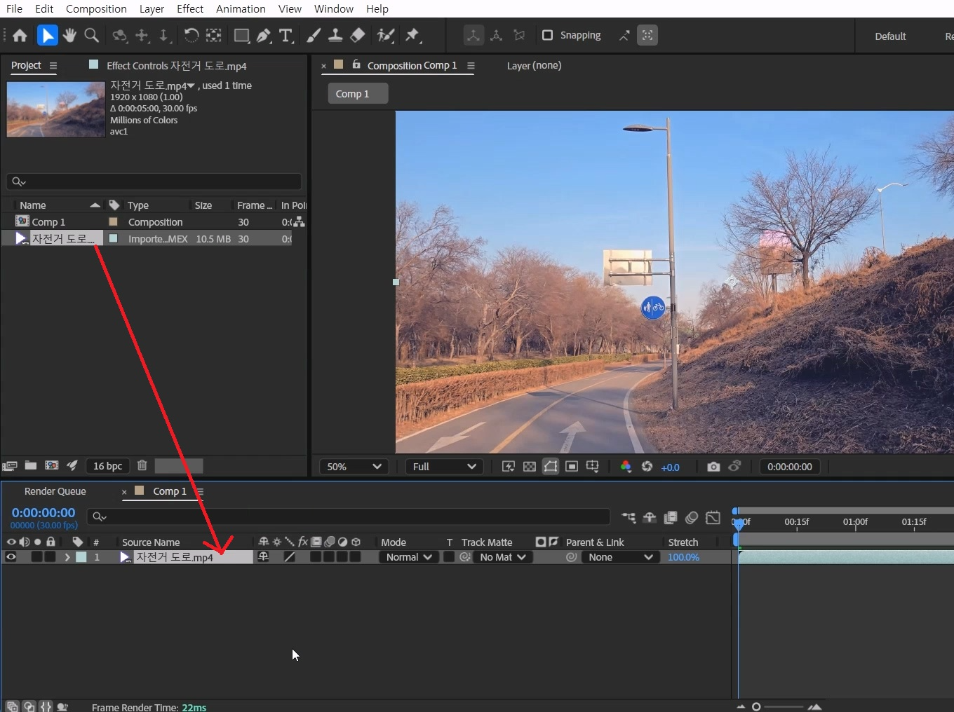 필요한 길이만 프리-컴프에서 조절하면 시간을 줄일 수 있어요.