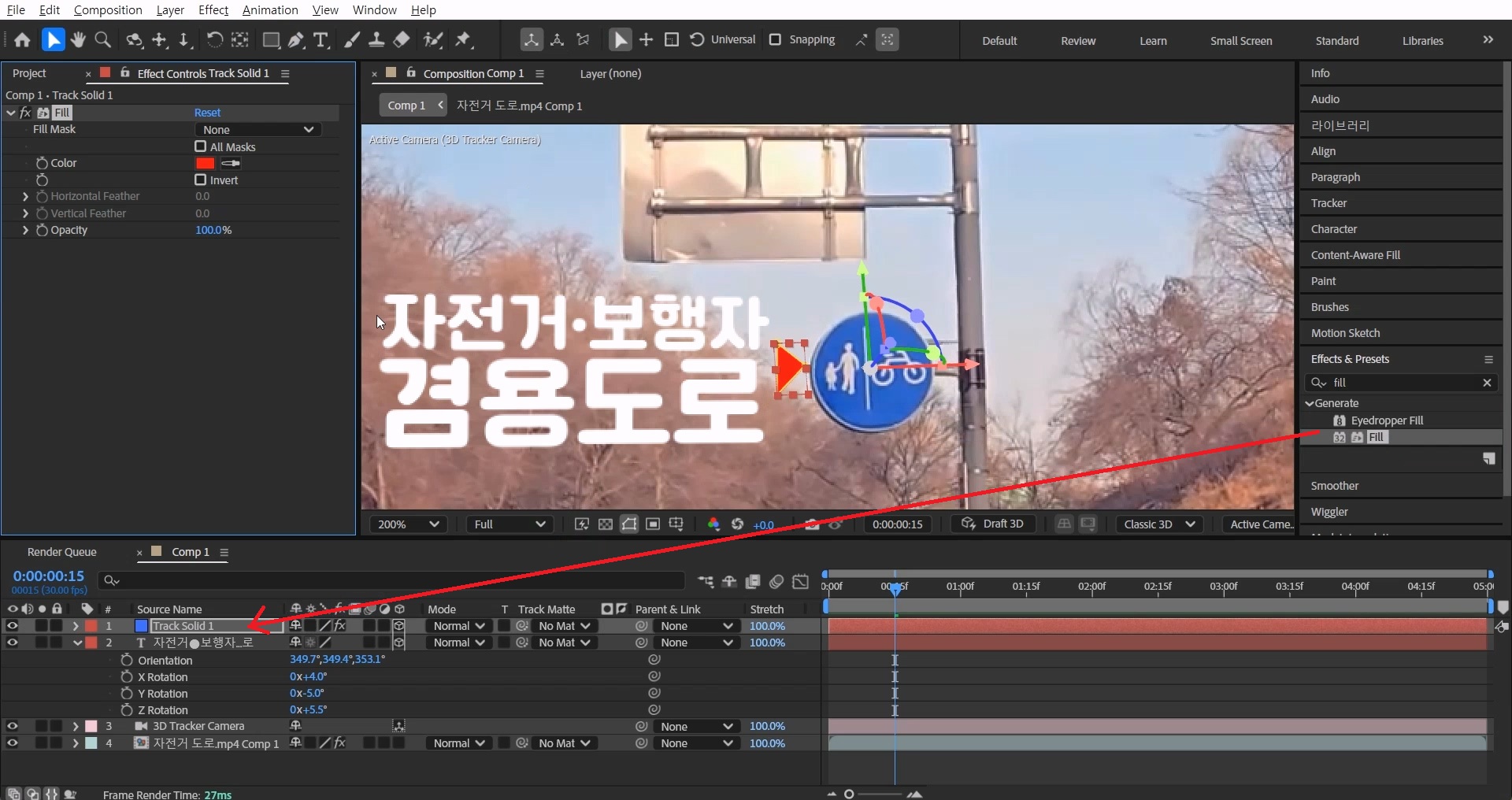 [Ctrl+5] Effects & Presets 창을 열고 Fill 검색해서